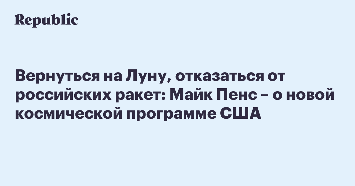 Колонка Пенса называется «Америка вернется на Луну и пойдет дальше». Вице-президент подчеркнул, что космическая программа страны предполагает отправку астронавтов за пределы околоземной орбиты впервые с 1972 года, а также «возрождение» присутствия США на Луне. «С освоением Луны американцы станут первой нацией, которая приведет человечество на Марс», – добавил Пенс.