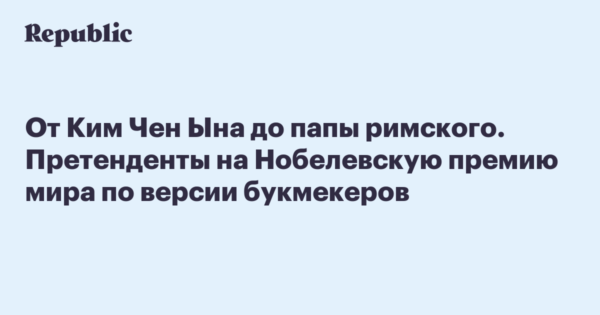 От Ким Чен Ына до папы римского. Претенденты на Нобелевскую премию мира по версии букмекеров
