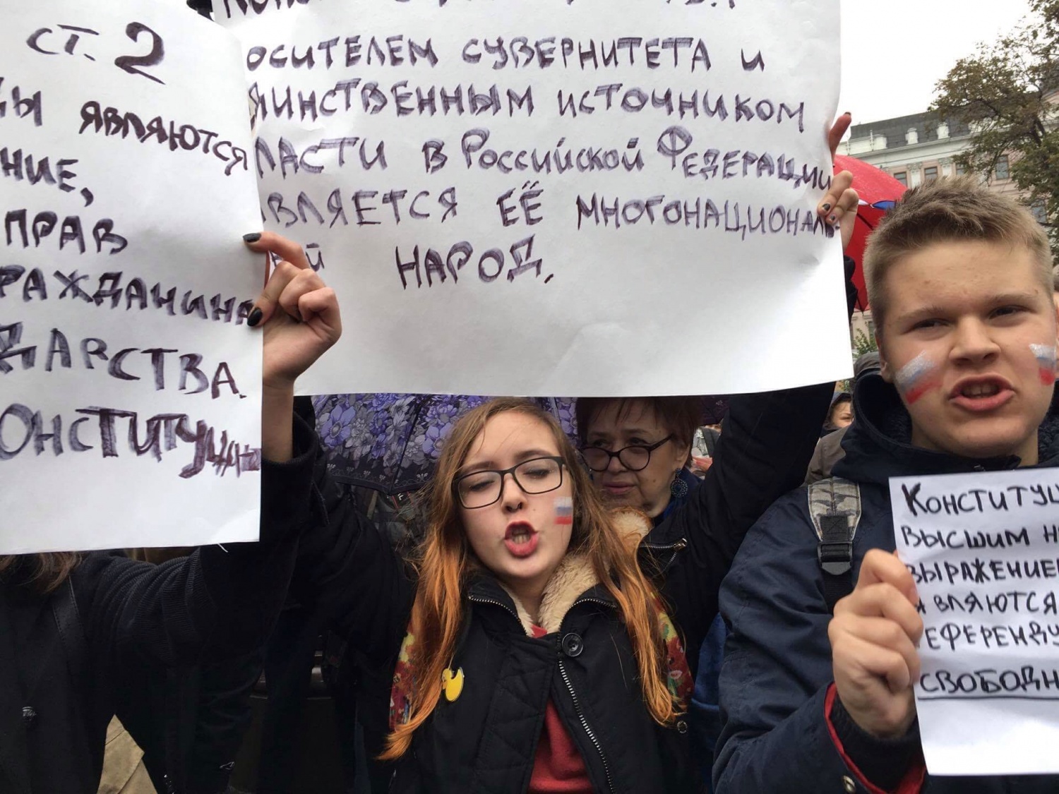 В день рождения Владимира Путина (ему сегодня 65) и в день убийства Анны Политковской (ей было 48) по призыву отправленного в ИВС на очередные 20 суток Алексея Навального в Москве и в других городах России проходят митинги под лозунгом «Россия без Путина», «Мы за честные выборы», «Мы здесь власть». Основной костяк демонстрантов — молодые люди студенческого возраста