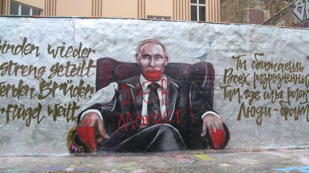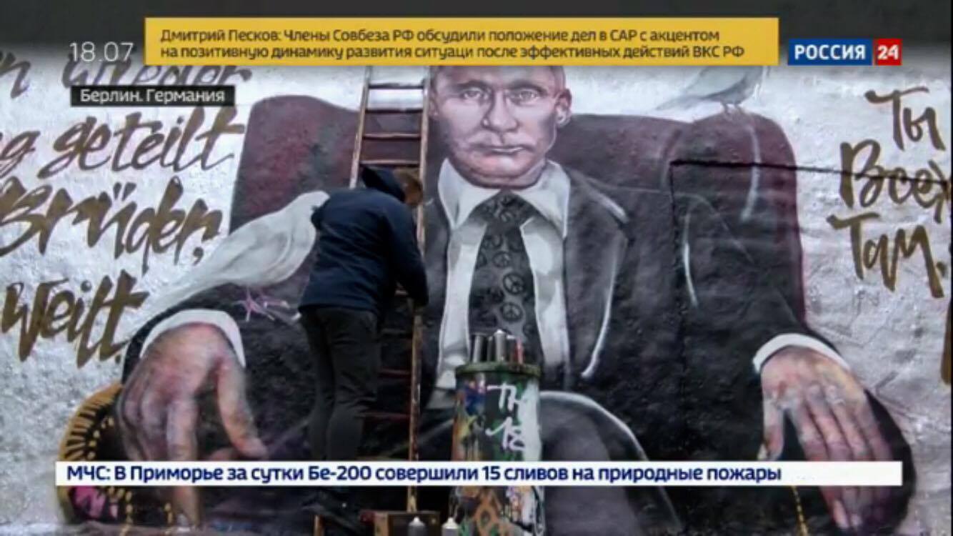 Федеральные каналы РФ продолжают рассказывать о граффити в Берлине, посвященном Путину так, как будто бы это граффити не подверглось коррекции. А оно подверглось.