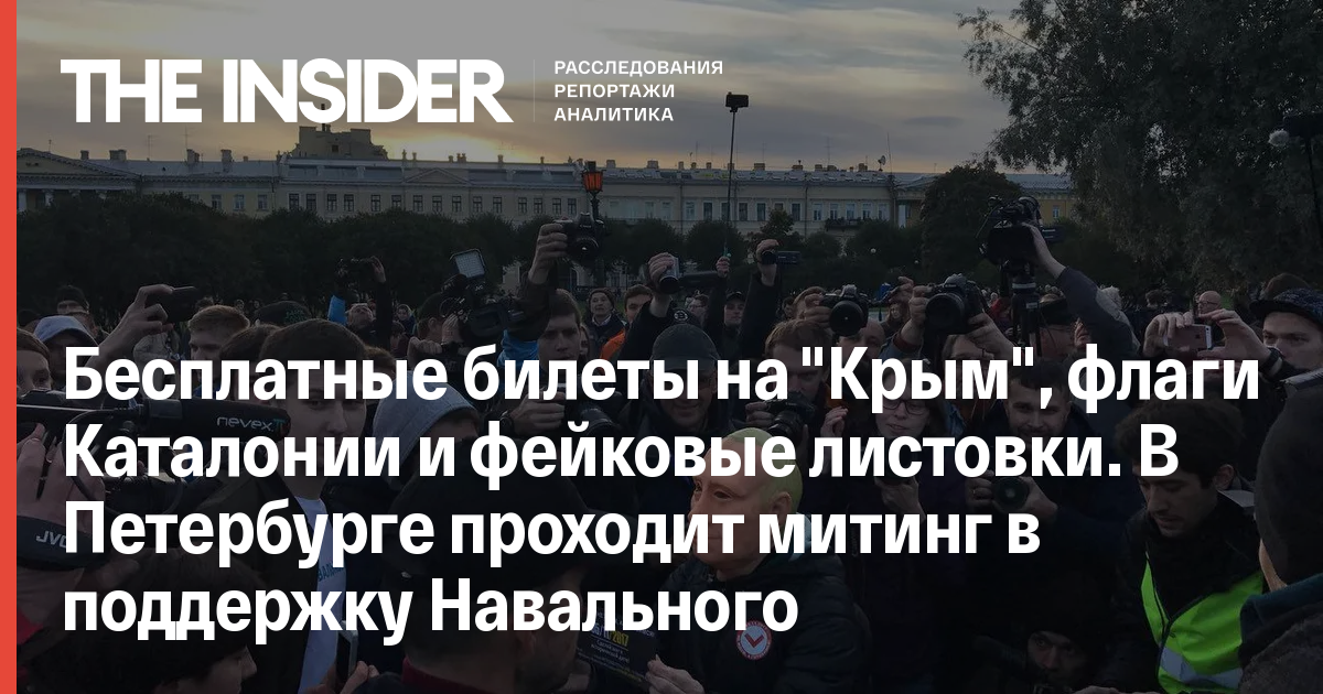 Бесплатные билеты на "Крым", флаги Каталонии и фейковые листовки. В Петербурге проходит митинг в поддержку Навального