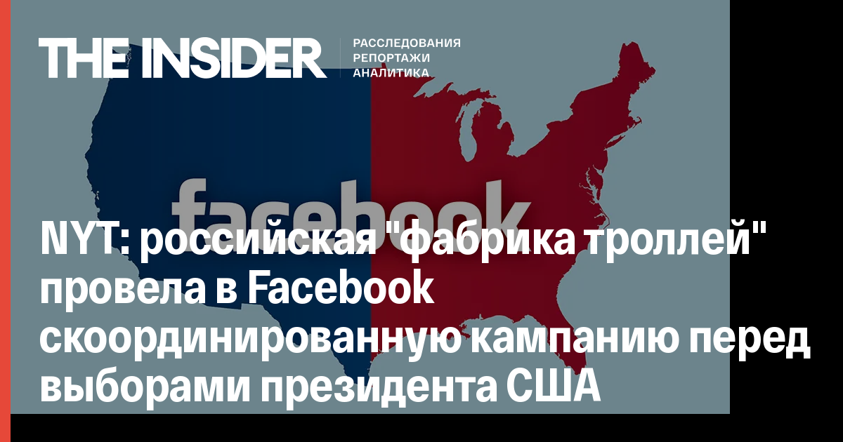 ФБР продолжает расследование вмешательства России в американские выборы 2016 года. Предполагается, что в Facebook и других популярных социальных сетях Россия развернула масштабную кампанию по дезинформации. The Insider предлагает полный перевод статьи The New York Times.
