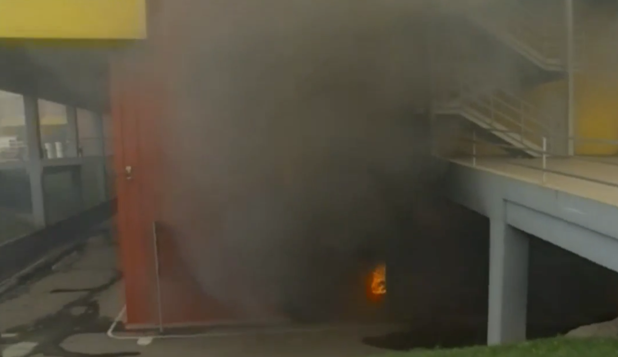 «Под действием высоких температур произошел взрыв нескольких машин на подземной парковке. Она вся охвачена огнем», — сказал источник. Масштабный пожар на парковке подтверждается кадрами очевидцев.