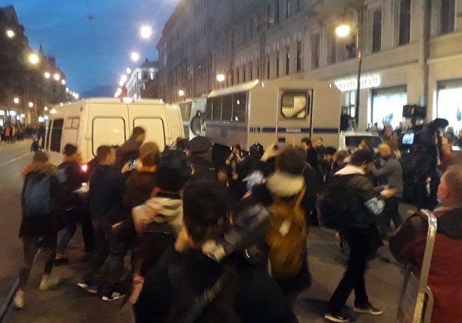 Довольно быстро полицейским удалось рассечь толпу и выгнать митингующих на тротуары. В районе 20:00 движение по Литейному восстановилось. Подъехала карета скорой помощи. Как рассказали очевидцы, медиков вызвали для одной из участниц митинга, у которой, возможно, была сломана нога.