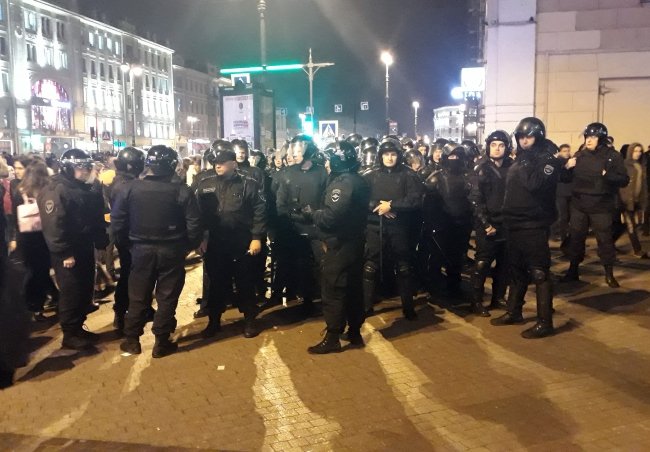 Участники акции протеста в Петербурге перекрыли движение на Литейном проспекте и едва не дошли до Невского. Хроника событий 7 октября.