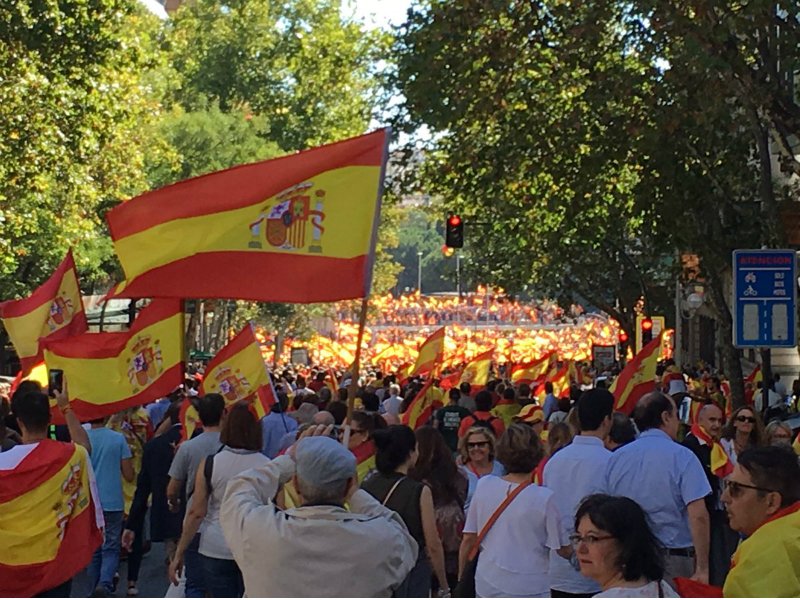 Люди вышли на акцию под лозунгами «Я - испанец» и «Каталония - это Испания».