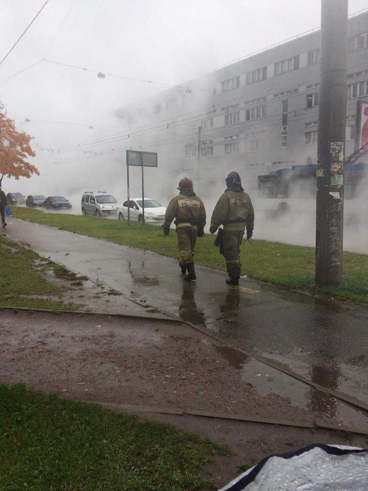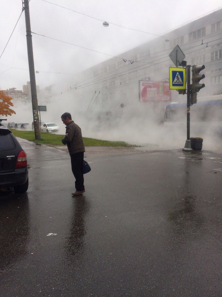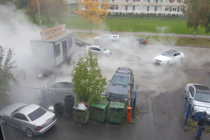 На фотографиях в комментариях видно, что большую часть улицы рядом с прорывом заволокло паром.