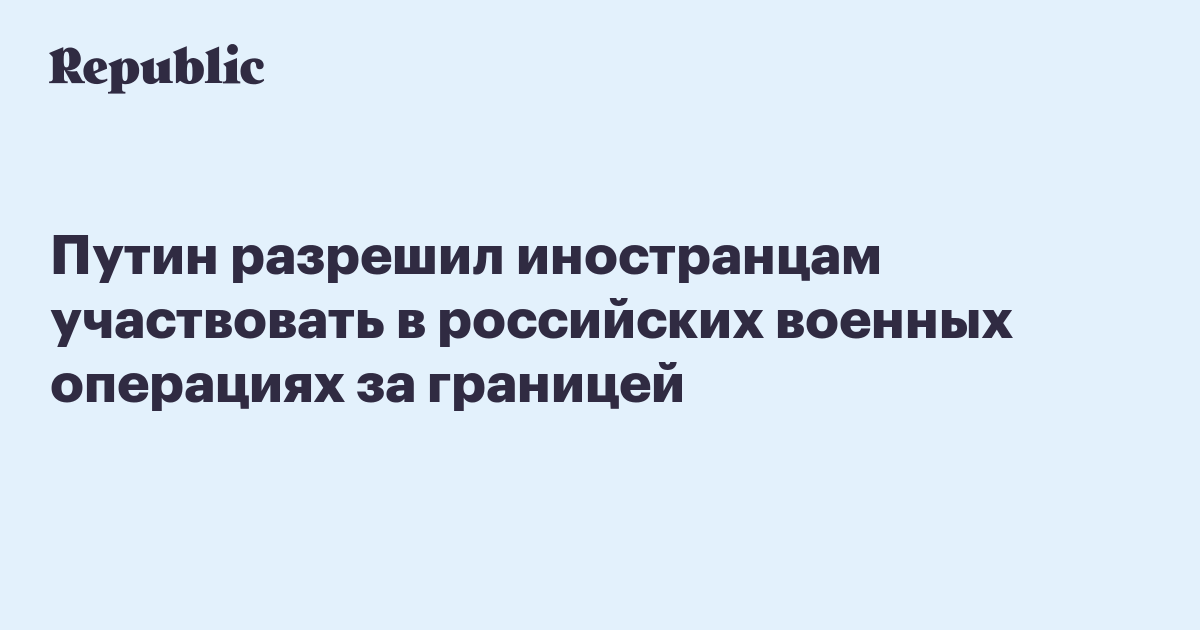 Путин разрешил иностранцам участвовать в российских военных операциях за границей