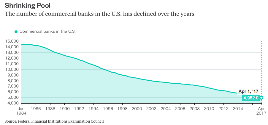 Пока в России «Альфа» собирается создавать цифровой банк, американские банки вслед за ритейлерами ждут нового конкурента в виде Amazon. Компания Джеффа Безоса в последние пару лет уже проводила консультации с регуляторами о выходе на рынок банковских услуг. Все логично: как и в России, в США количество банков и их физических отделений сокращается в разы.