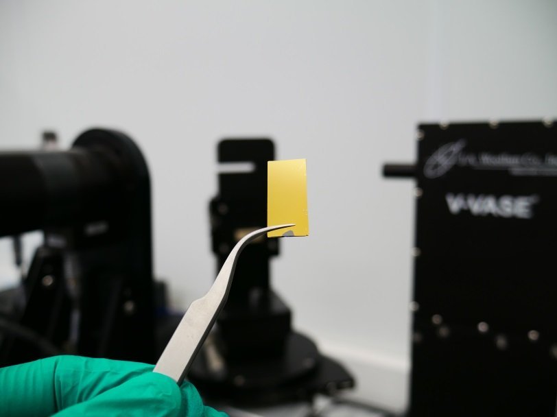 Подготовка образца (тонкой пленки золота) к измерениям на спектральном эллипсометре МФТИ Исследователи из Московского физико-технического института выполнили точные измерения диэлектрических (оптических) констант сверхтонких пленок золота с толщинами от 20 до 200 нанометров в оптическом диапазоне длин волн. В настоящее время тонкие пленки золота — один из основных элементов микро- и наноразмерных оптических и оптоэлектронных устройств. Полученные результаты будут широко востребованы учеными. Работа опубликована в журнале Optics Express, кратко о ней рассказывает пресс-релиз МФТИ.