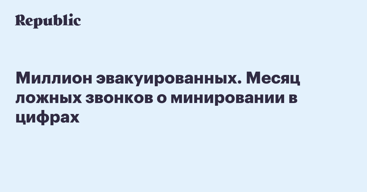 Месяц назад в России начались массовые случаи эвакуации из-за телефонных звонков неизвестных с угрозами взрывов. ФСБ считает, что звонки поступают из-за пределов России с использованием IP-телефонии, и пока не может отследить злоумышленников. Republic собрал основные цифры, которые помогают оценить масштаб происходящего.