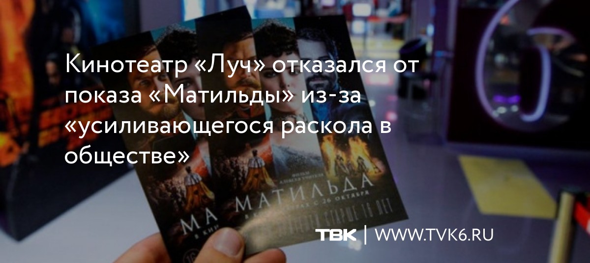 Кинотеатр «Луч» отказался от показа «Матильды» из-за «усиливающегося раскола в обществе»