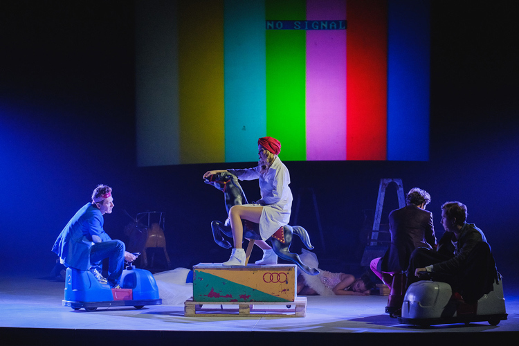 © Юлия Трегуб По большому счету, именно музыка вкупе со сценографией (насколько о ней вообще можно в данном случае говорить) спектакль и спасают. Спасают просто — за счет постоянных динамических изменений в рамках одного сценического фрейма. Само течение музыки как бы заглядывает вперед, сам ее процесс как бы все время что-то обещает и этим поддерживает зрительское внимание в боевой готовности. Ну и поворотные круги — странно было бы рядовому зрителю засыпать, когда на сцене существует и все время меняется такая активная хореографическая конструкция. Впрочем, от этого бесконечного мельтешения временами, конечно, отключаешься.