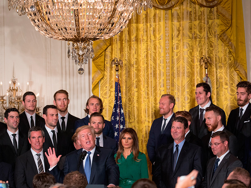 Президент США по традиции устраивает в своей резиденции ежегодные торжественные приемы для команд, побеждающих в главных спортивных лигах страны. "Питтсбург" второй год подряд стал чемпионом Национальной хоккейной лиги.