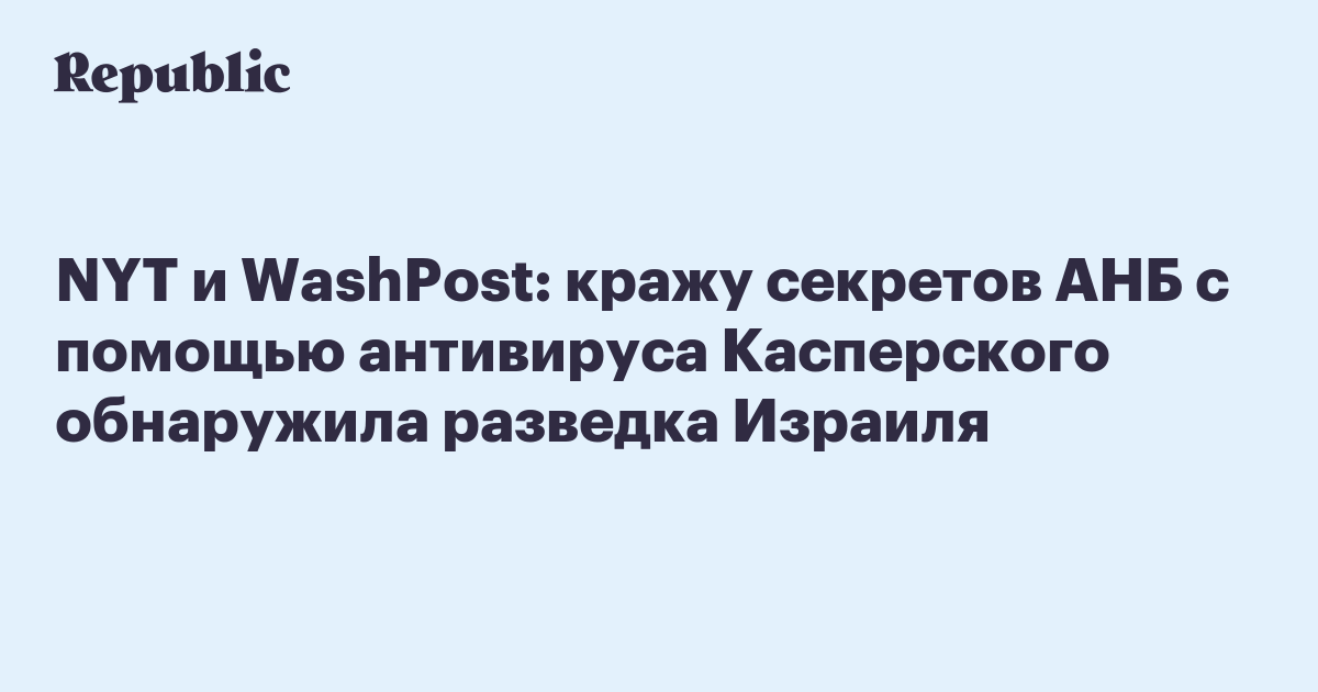 Власти США узнали от разведки Израиля о том, что «русские хакеры» украли секретные данные Агентства национальной безопасности (АНБ) с помощью антивируса Касперского. Об этом со ссылкой на источники написали The New York Times и The Washington Post.