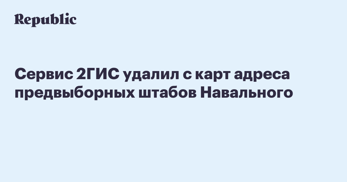 Российский геоинформационный сервис 2ГИС удалил с карт адреса предвыборных штабов оппозиционера Алексея Навального. На исчезновение адреса владимирского штаба и затягивание с размещением адреса томского пожаловались пользователи в твиттере сервиса.