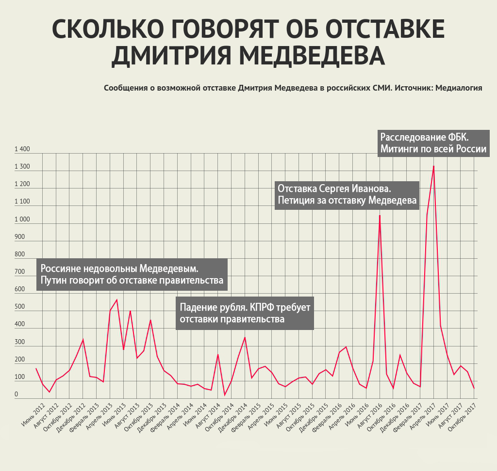 - СМИ отправляют Дмитрия Медведева в отставку с поста премьера не впервые, но к концу президентского срока Владимира Путина таких публикаций становится на порядок больше, показывают данные «Медиалогии»: