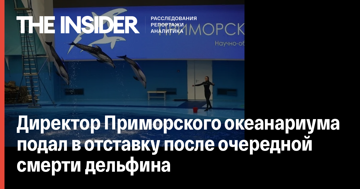 Директор Приморского океанариума Александр Михайлюк объявил, что уходит в отставку. Как сообщает «Интерфакс» со ссылкой на заявление, распространенное пресс-службой океанариума, это решение было принято после того как самка дельфина умерла от пневмонии. Это далеко не первая смерть животного в океанариуме.