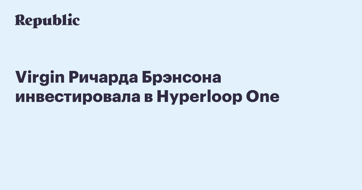 Компания Virgin миллиардера Ричарда Брэнсона инвестировала в Hyperloop One. После ребрендинга компания будет называться Virgin Hyperloop One, пишет CNBC.
