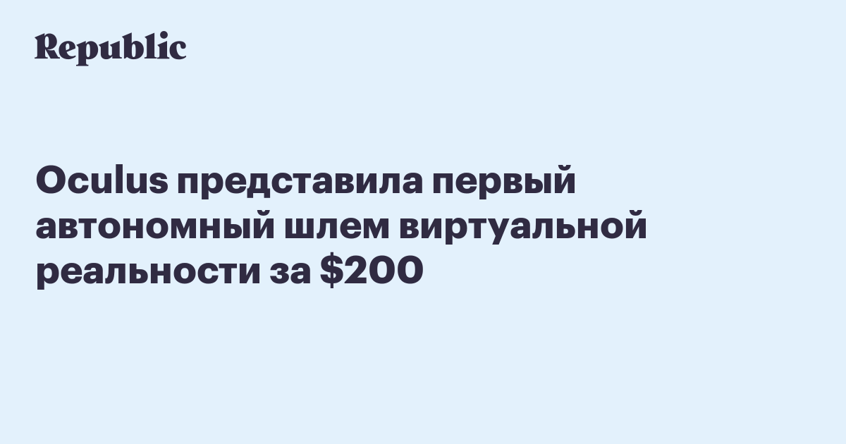 Oculus представила первый автономный шлем виртуальной реальности за $200