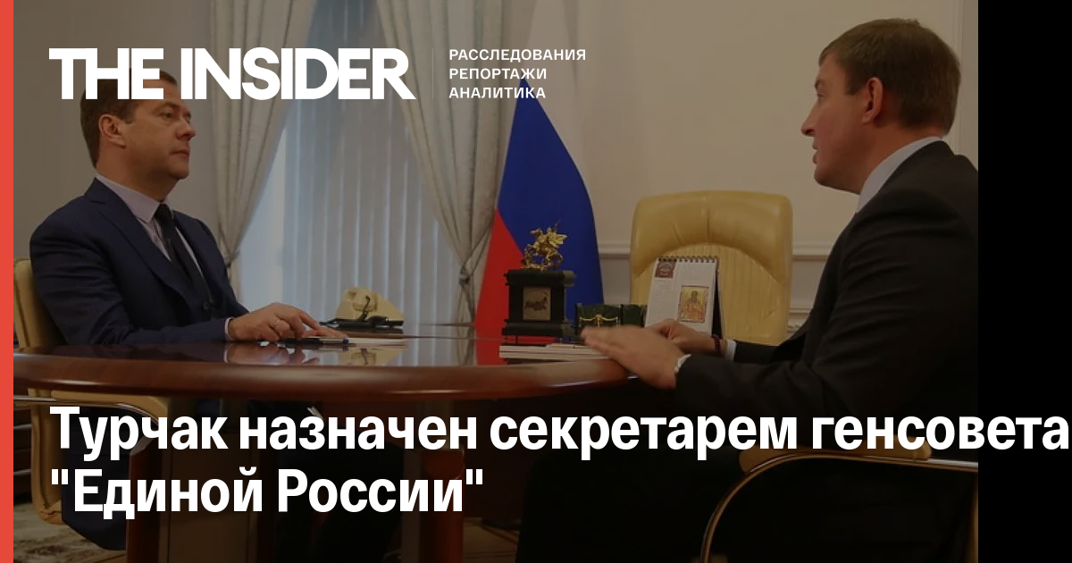 «В соответствии с уставом, я сейчас вас назначаю исполняющим обязанности секретаря генерального совета, а впоследствии вашу кандидатуру рассмотрит съезд партии», — сказал Медведев на встрече с Турчаком.