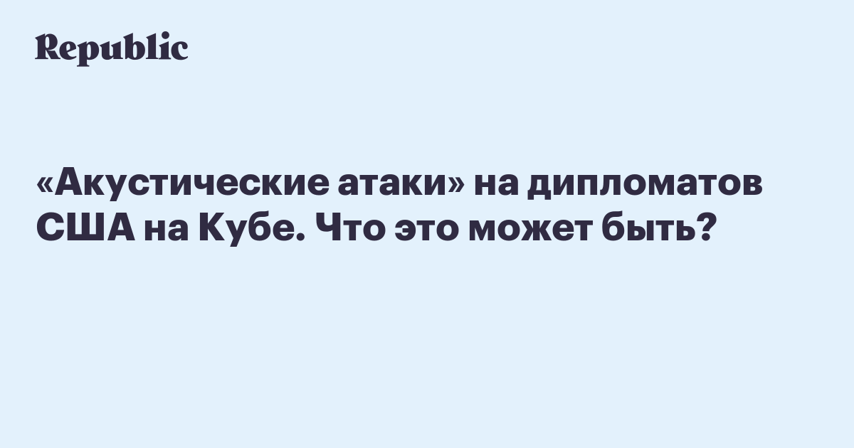 Агентство Associated Press 12 октября опубликовало аудиозапись так называемой «акустической атаки» на сотрудников посольства США на Кубе. В Госдепартаменте подлинность записи пока не подтвердили, отметив, что продолжают расследование аудионападений на дипломатов. В ведомстве все еще не знают, кто может стоять за ними. Republic вспоминает историю вопроса и перечисляет основные предположения о происхождении и цели этих атак.