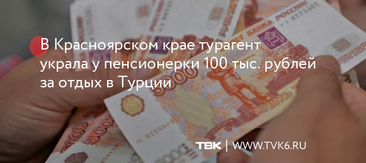 В Красноярском крае турагент украла у пенсионерки 100 тыс. рублей за отдых в Турции