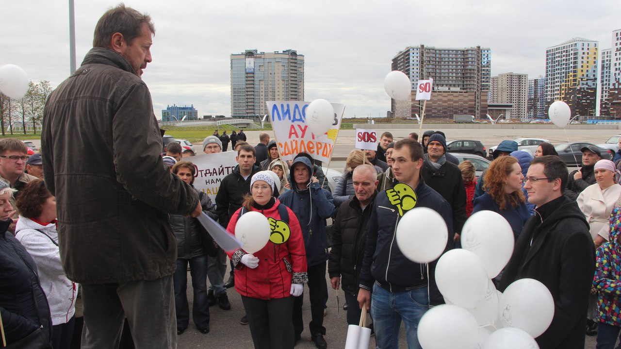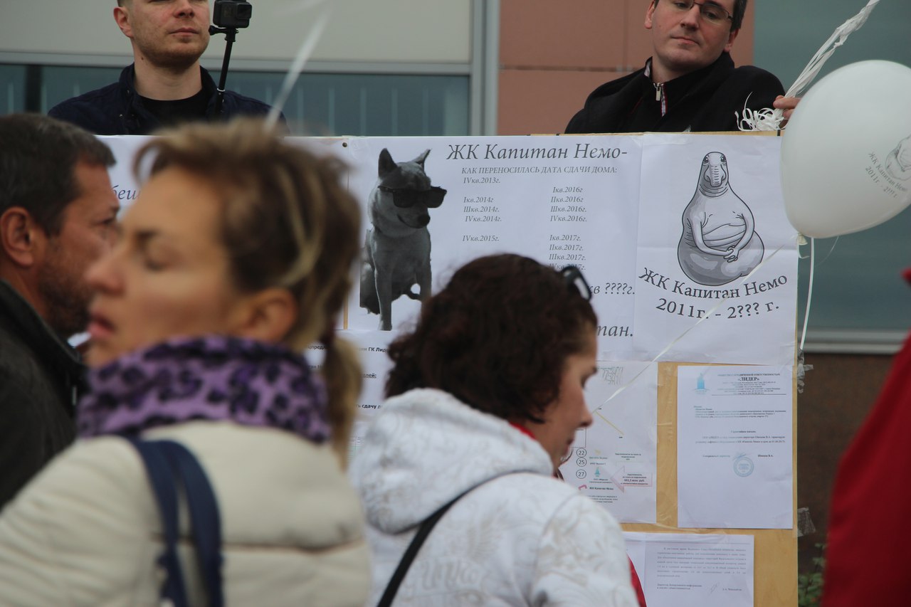В Петербурге прошел митинг пайщиков ЖК «Капитан Немо» застройщика «Лидер групп», который возводится на намыве Васильевского острова. Около 50 человек вышли к аквапарку «Вотервиль».