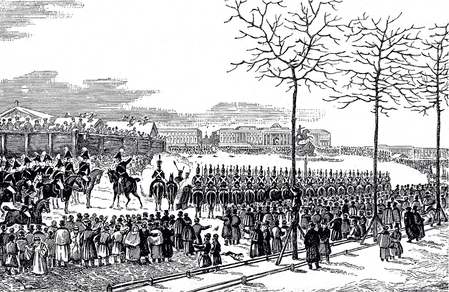 Вокруг трех тысяч солдат и нескольких десятков офицеров на Сенатской площади быстро собралась толпа зевак. Численность ее, по оценкам историков, составила 20–30 тыс. человек. Сначала думали, что идут учения, но, разобравшись, многие стали поддерживать декабристов. В полицейское оцепление и правительственных парламентеров летели камни и даже поленья. Как вспоминал один из очевидцев, «три тысячи солдат и вдесятеро больше народу были готовы на все по мановению начальника». В воздухе отчетливо запахло русским бунтом. Это, видимо, поняли и декабристы, не стремившиеся потакать инстинктам «черни» — именно так в документах того времени именовались собравшиеся на площади горожане. Показательно, что первый боевой залп в тот день был дан не по мятежным полкам, а как раз по сидевшим на соседних крышах зевакам. Во время подавления восстания «страшно далеких от народа» заговорщиков больше всего погибло как раз «черни» — 903 из 1271 человека, согласно подсчетам чиновника Министерства юстиции Корсакова. В результате стрельбы картечью в числе убитых оказались 79 женщин и 150 несовершеннолетних, явно не имевших прямого отношения к людям в форме.