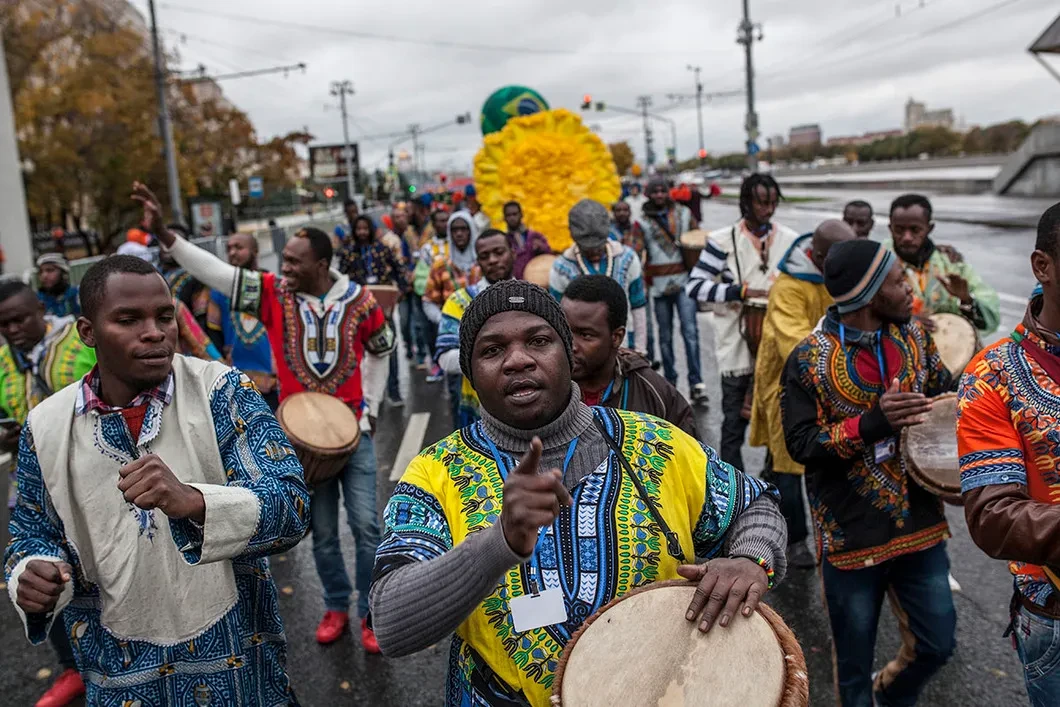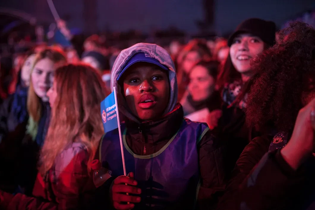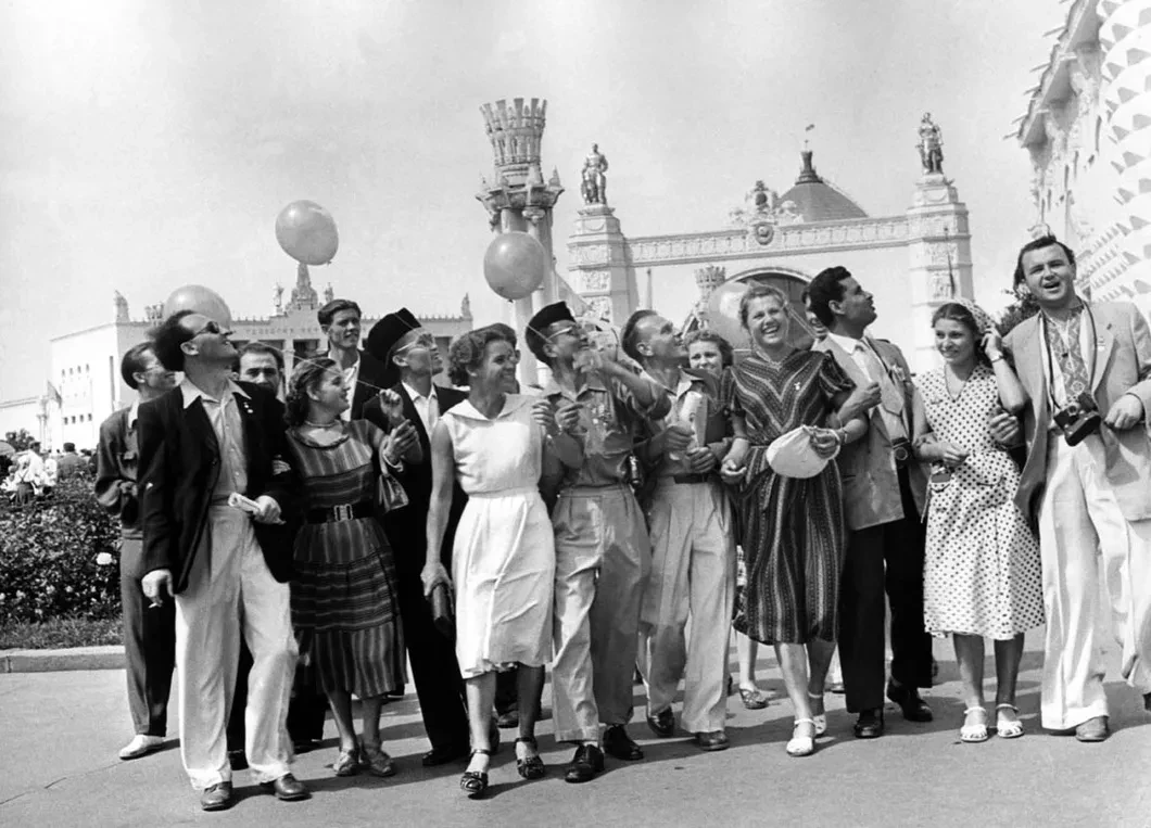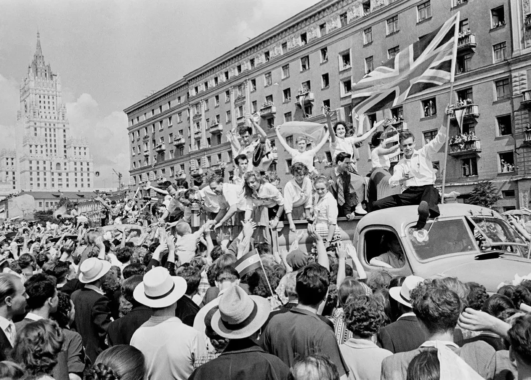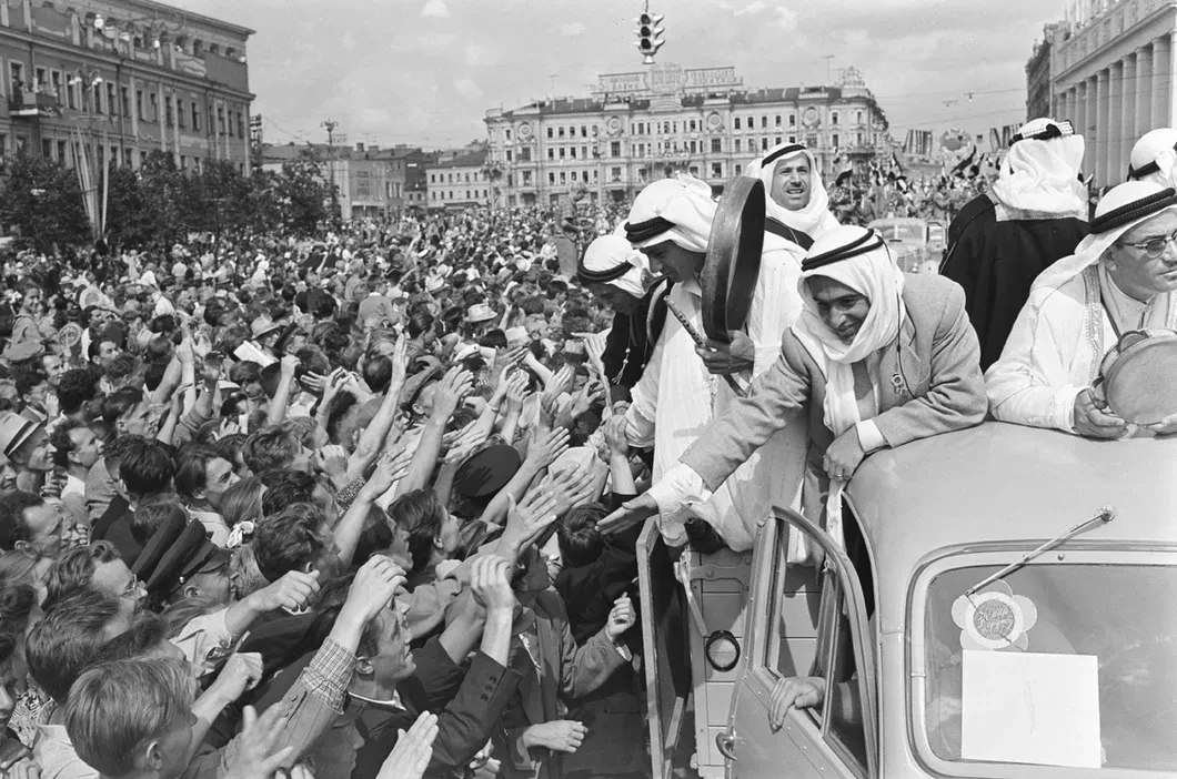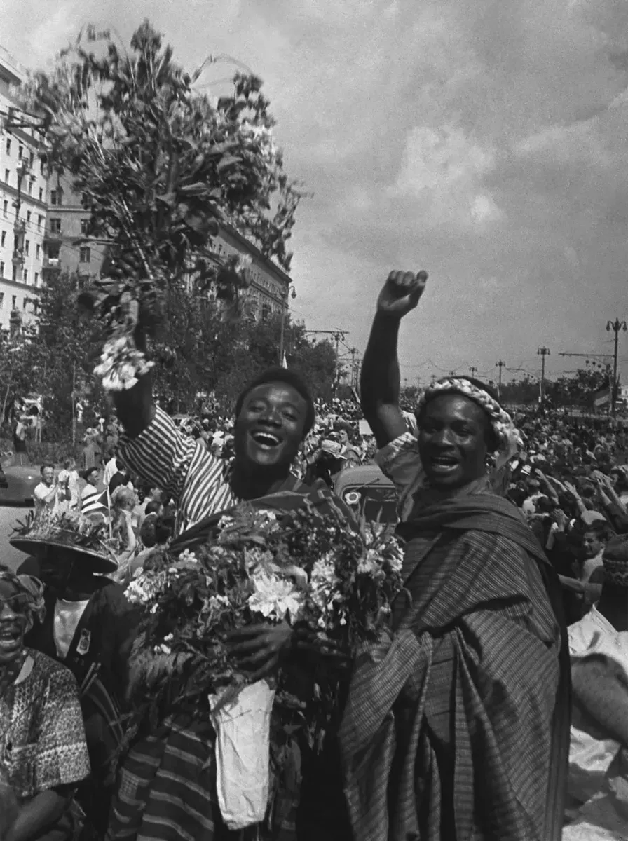 Участники фестиваля направляются на Центральный стадион имени В.И.Ленина. Делегация Великобритании во время фестивального шествия. Москва, 1957 год. Фото: Валентин Мастюков и Александр Коньков/ Фотохроника ТАССЗрители. Фото: Влад Докшин / «Новая газета»Группа делегатов из Индонезии и Туниса среди москвичей на Всесоюзной сельскохозяйственной выставке во время VI Всемирного фестиваля молодежи и студентов. Москва, 1957 год. Фото: Эммануил Евзерихин/ ТАССИндийская колонна шествия. Фото: Влад Докшин / «Новая газета»Москва. 5 августа 1957 г. Выступление артистов из Африки на территории ВДНХ. Москва, 1957 год. Фото: Евзерихин Эммануил/ Фотохроника ТАССУчастники карнавального шествия в Москве в рамках XIX Всемирного фестиваля молодежи и студенчества. Фото: Влад Докшин / «Новая газета»VI Всемирный фестиваль молодежи и студентов. Салют москвичам. 1957 год. Фото: Лев Портер / Фотохроника ТАССРоссийские студенты на шествии. Фото: Влад Докшин / «Новая газета»Москвичи приветствуют делегатов Иордании, направляющихся на Центральный стадион имени В.И. Ленина. 1957 год. Фото: Рахманов Николай/ Фотохроника ТАССКитайская колонна шествия. Фото: Влад Докшин / «Новая газета»Российская студентка в китайской колонне шествия. Фото: Влад Докшин / «Новая газета»Москва. Молодежный международный фестиваль. Всесоюзная сельскохозяйственная выставка. Танец со шляпами в исполнении Вьетнамского танцевального ансамбля. Москва, 1957 год. Фото: Эммануил Евзерихин/ Фотохроника ТАССРоссийские актеры в японской колонне шествия. Фото: Влад Докшин / «Новая газета»Семейный танцевальный коллектив Гунея (Цейлон) в национальных костюмах во время концерта на площади Коммуны. Москва. 30 июля 1957 г. Фото: П. Лисенкин, Шулепов Евгений/ Фотохроника ТАСССтудентка РУДН на концерте, который начался после шествия. Фото: Влад Докшин / «Новая газета»Участник VI Всемирного фестиваля молодежи и студентов из Африки на Красной площади. Москва, 1957 год. Фото: Василий Егоров / Фотохроника ТАССБурятский актер снимает китайский народный костюм после окончания шествия. Фото: Влад Докшин / «Новая газета»Автобус с актерами и драконом. Фото: Влад Докшин / «Новая газета»