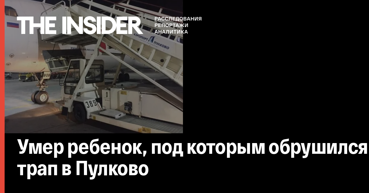 В одной из больниц Санкт-Петербурга умерла девочка, получившая тяжелые травмы при обрушении трапа в аэропорту Пулково в конце сентября. Об этом сообщает «Росбалт».