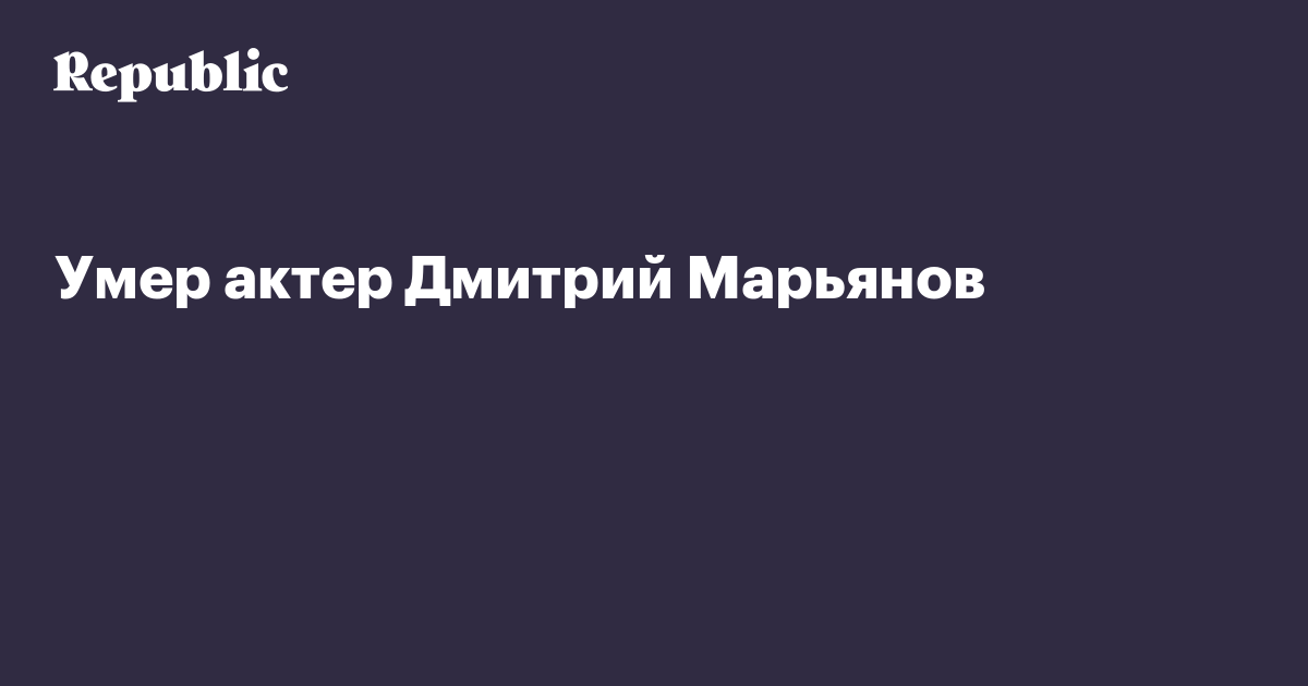 Актер Дмитрий Марьянов умер в возрасте 47 лет. Об этом ТАСС сообщила представительница артиста Алевтина Кунгурова.