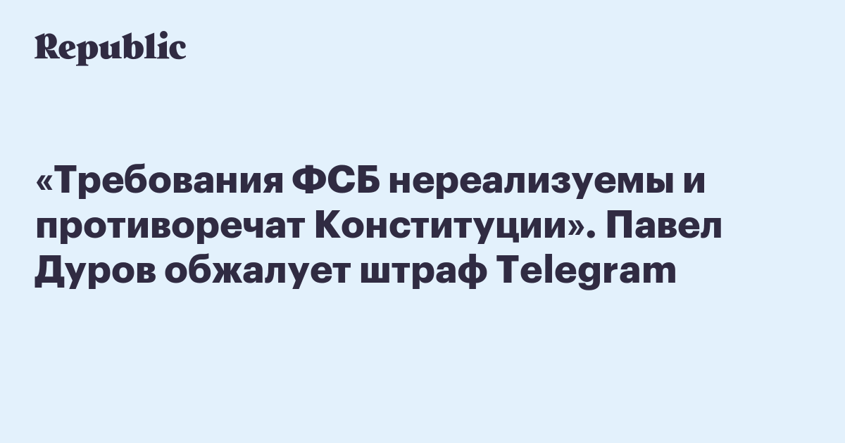 «Требования ФСБ нереализуемы и противоречат Конституции». Павел Дуров обжалует штраф Telegram