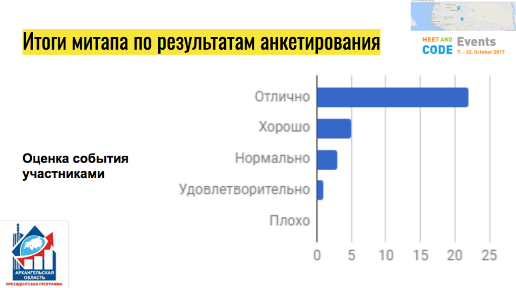 10 октября 2017 года в Архангельске прошло первое событие в рамках инициативы Meet and Code и Европейской недели программирования – митап «Кодируй для Поморья!».
