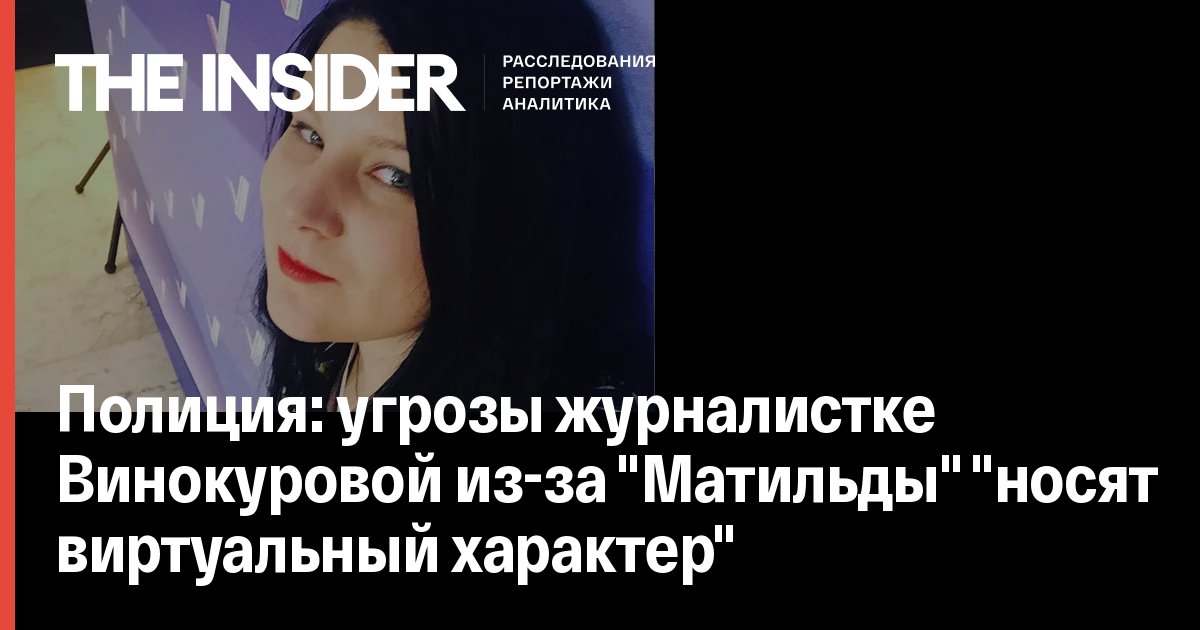 Полиция: угрозы журналистке Винокуровой из-за "Матильды" "носят виртуальный характер"
