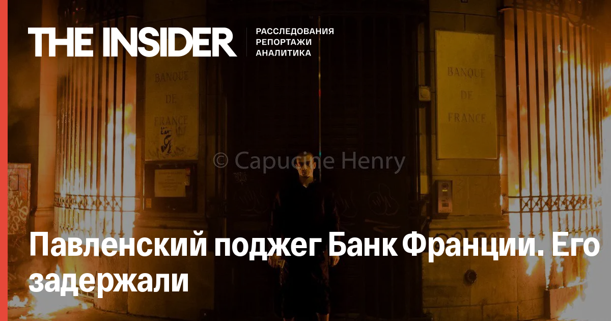 Фотографию Павленского на фоне горящего здания опубликовал в твиттере фотограф Капуцин Анри: «Русский художник Павленский арестован полицией в 4:10 после поджога Банк Франции», - написал он.