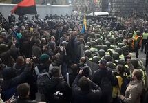 В центр украинской столицы стянуто большое количество силовиков. Верховную Раду двойным кольцом оцепили сотрудники Нацгвардии со щитами. Силовики еще в ночь на понедельник перекрыли правительственный квартал.