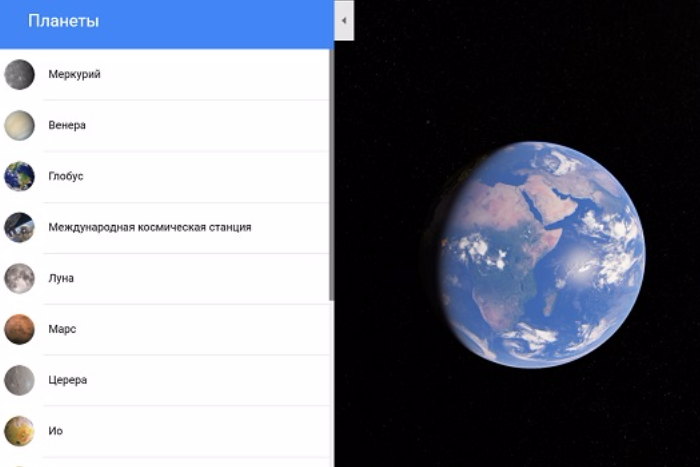 Для просмотра в приложении доступны 16 небесных тел, в том числе Меркурий, Марс и Луна.