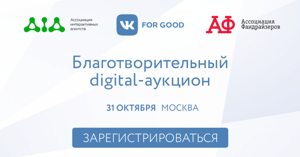 31 октября ВКонтакте совместно с Ассоциацией интерактивных агентств (АИА) и Ассоциацией фандрайзеров (АФ) проведет первый Благотворительный аукцион pro bono часов среди интерактивных агентств России. На благотворительном digital-аукционе агентства будут голосовать часами своих услуг за представленные лоты – фонды. Никаких пожертвований, только реальная работа.