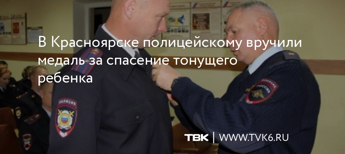В Красноярске полицейскому вручили медаль за спасение тонущего ребенка