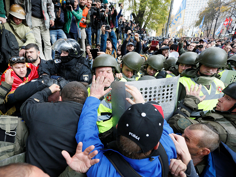 В Киеве двое сотрудников правоохранительных органов получили травмы при столкновениях во вторник, 17 октября, с митингующими у здания Верховной Рады. Возбуждено уголовное дело, сообщает Министерство внутренних дел Украины.