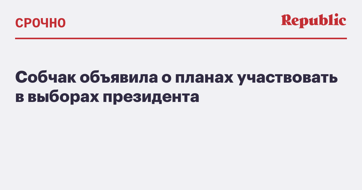 Газета «Ведомости» в начале сентября написала, что Кремль планирует сделать на выборах главным соперником президента Владимира Путина женщину. «Идеальным вариантом» называли Ксению Собчак. Она, однако, заявила, что «ни с какой “апешечкой” и прочим адом никогда в сношениях замечена не была» и не будет.