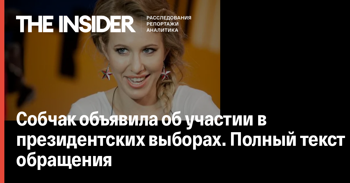 Собчак объявила об участии в президентских выборах. Полный текст обращения