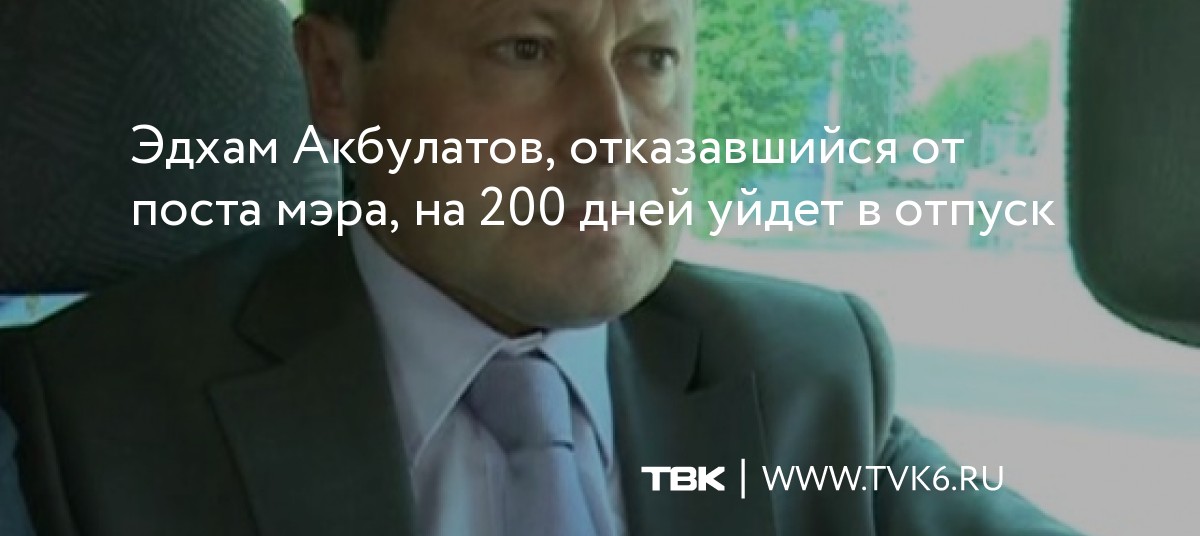 По информации корреспондента Новостей ТВК, за 5 лет работы на посту мэра у Акбулатова накопились 200 дней отпуска.