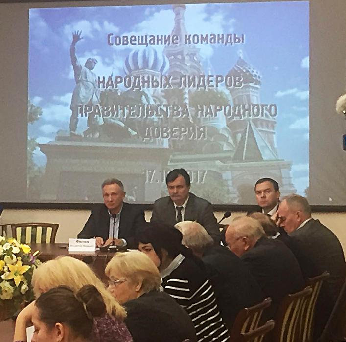 Заседание "команды народных лидеров" Пресс-служба КПРФ Афонин рассказал «Коммерсанту», что коммунисты «заинтересованы в формировании вокруг КПРФ широкой народно-патриотической коалиции». «Мы работаем с разными структурами, среди представителей на совещании есть и наши антиподы, монархисты, например. Но мы исходим из совместной экономической программы», — сказал он.