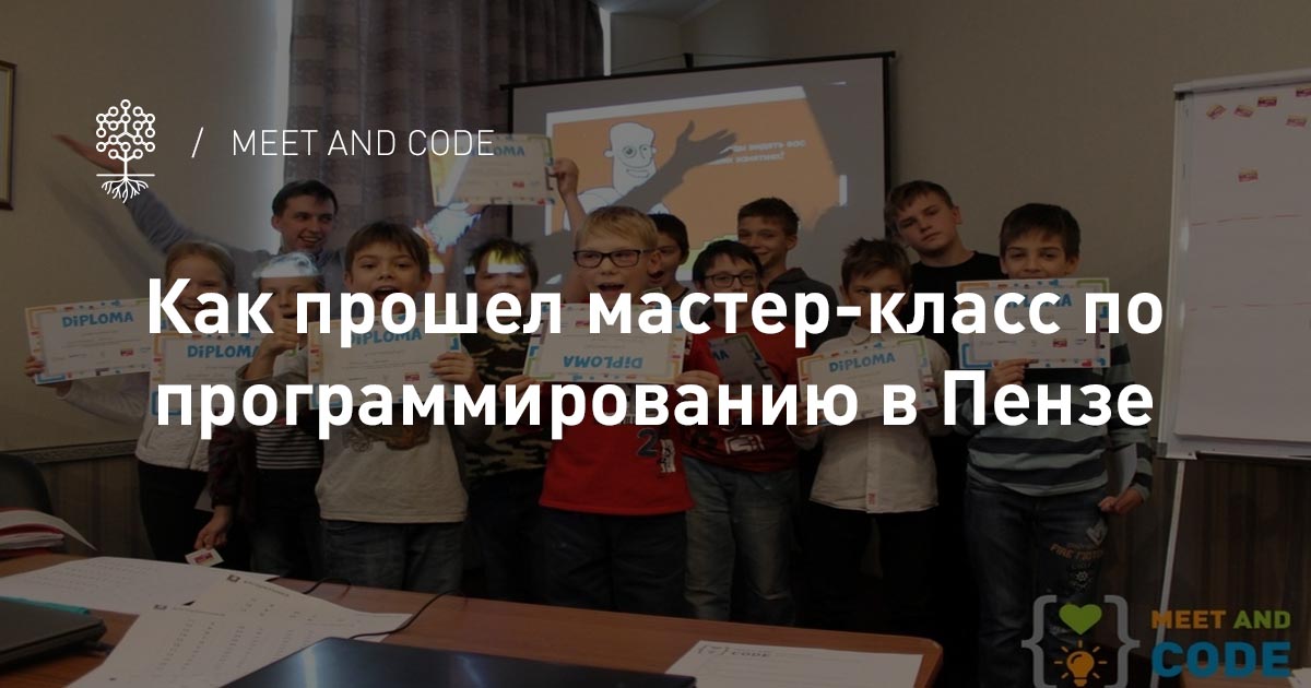 14 октября 2017 года в Пензе в рамках Европейской недели программирования и инициативы Meet and Code прошла серия мастер-классов по программированию. На мастер-классах дети от 7 до 12 лет разбирались, для чего нужно программирование, как составить правильный алгоритм, что такое «язык программирования» и «программа».