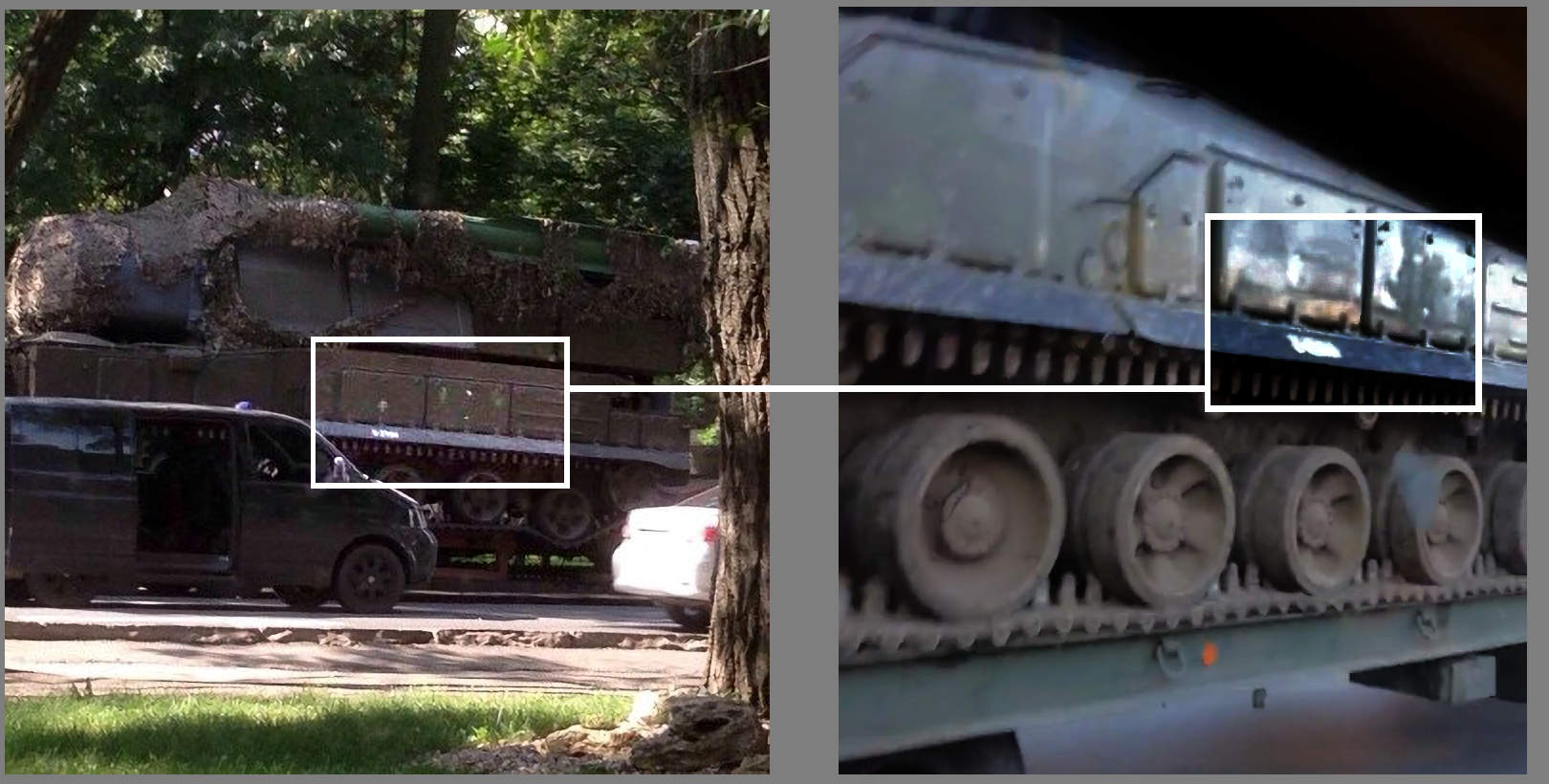 Прежде всего в Bellingcat подтвердили, что на фото тот самый "Бук" с бортовым номером 332, причастность которого к катастрофе "Боинга" удалось доказать ранее. Детали "Бука" на новом фото, опубликованном JIT, например катки (так называются колеса гусеничной техники), фрагменты закрашенных цифр "332", маркировка негабаритного груза на боковом щитке гусеницы и маркировка центра масс полностью совпали с предыдущими фото и видео "Бука" – как по внешнему виду, так и по взаимному расположению: