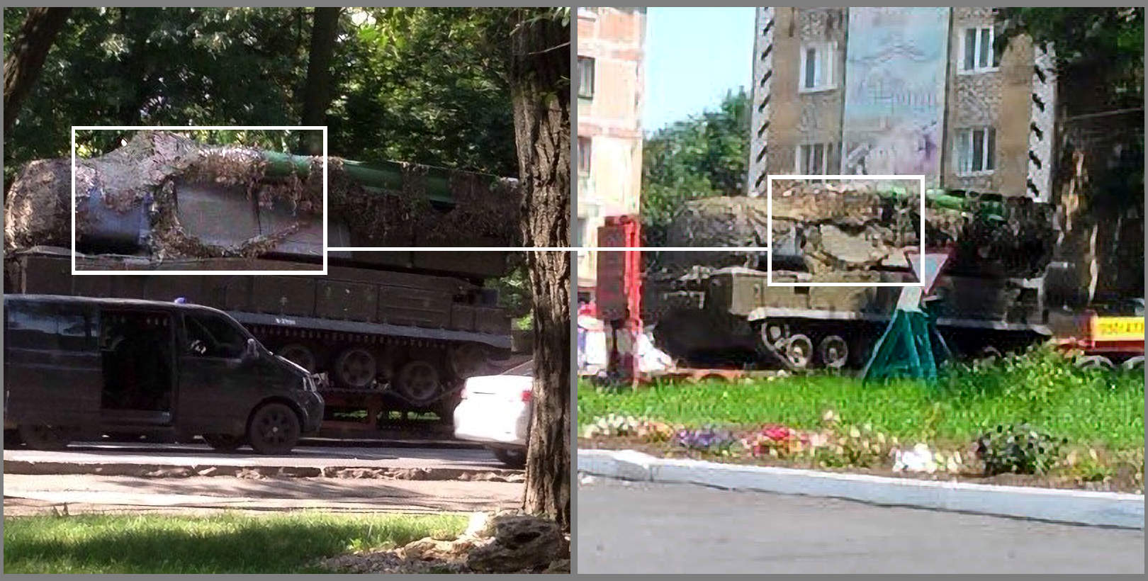 С известной фотографией "Бука" в городе Торез, а также еще одним фото, ранее опубликованным международной следственной группой, совпало и расположение маскировочной сетки: