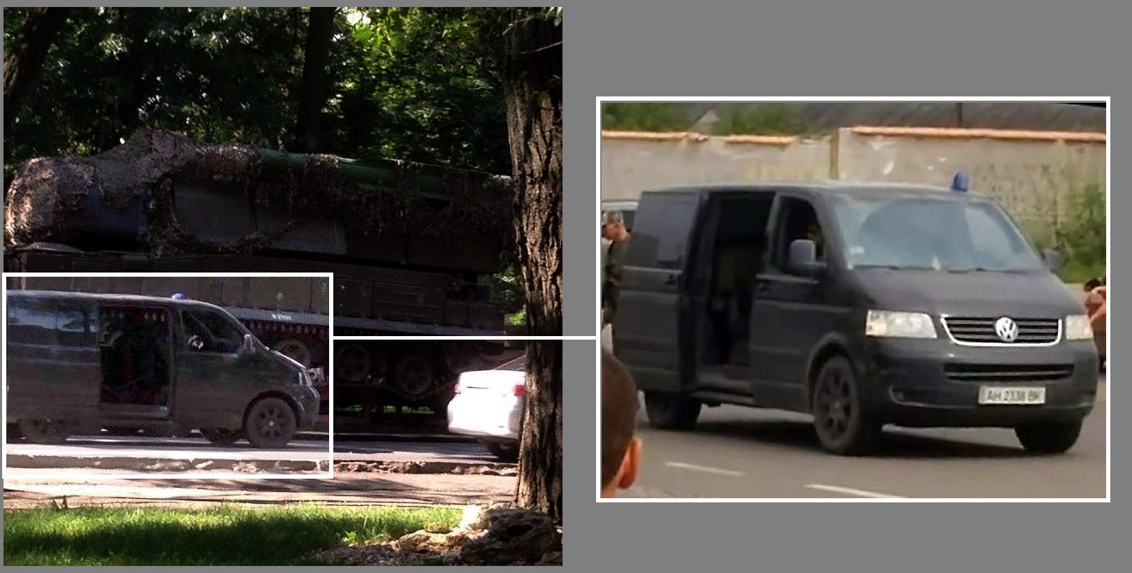 Особый интерес на фотографии представляет микроавтобус Volkswagen – тот же самый, что несколько раз попал на видео в составе колонн, перевозивших "Бук" 332 и другую военную технику из России на Украину.