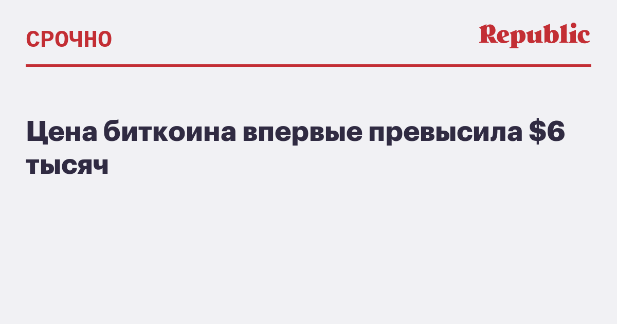 Стоимость биткоина впервые превысила отметку в $6 тысяч, установив новый рекорд. Об этом свидетельствуют данные Coindesk.